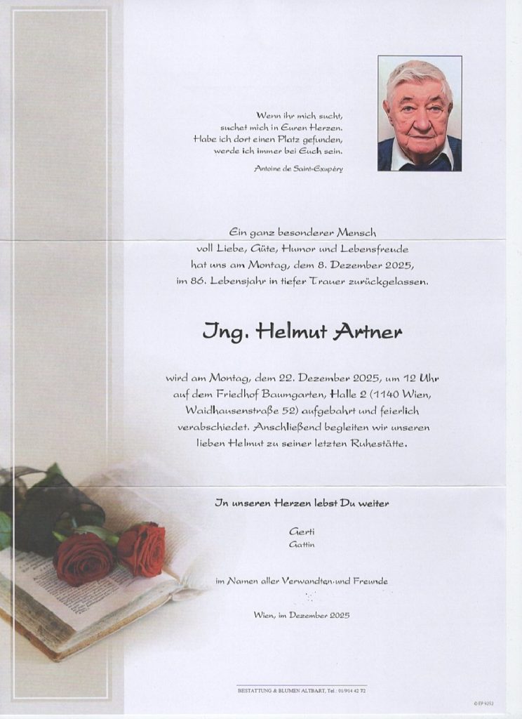 Der TSC Wiental Purkersdorf-Gablitz trauert um Ing. Helmut Artner
